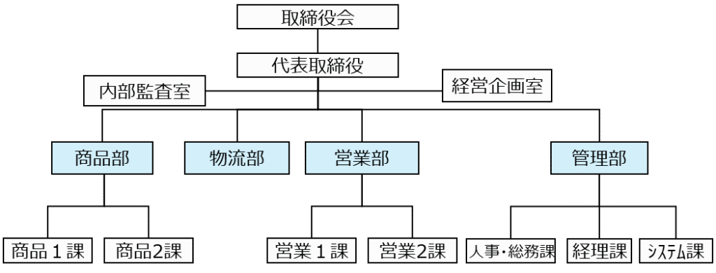 比較のために卸売業の組織図の例を以下に挙げてみます。