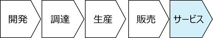 「サービス」プロセスは、この組織例では営業部内のサービス課が担当し、製品販売後の顧客対応業務を主に担います。製品の特性によっては、販売時に設置工事・初期設定・ユーザートレーニングといった役務提供が必要になることがあります。また、販売後には製品の定期メンテナンスや修理対応など、アフターサービスが求められます。サービス課はこれら一連の業務を担当します。